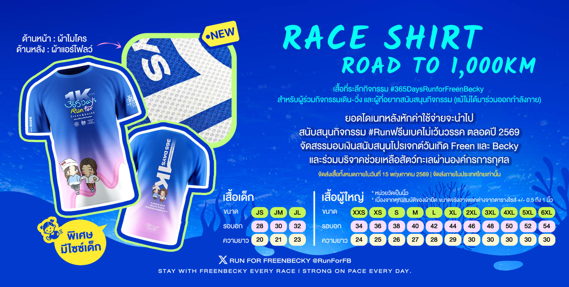 รับเสื้อที่ระลึก 365 days Race Shirt 1,000 kmยอดโดเนทหักค่าใช้จ่ายนำไปสนับสนุน